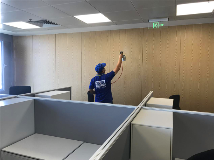 貴公司早在2015年與我司合作,對(duì)辦公室空氣污染進(jìn)行治理,今年公司擴(kuò)大規(guī)模,又新裝修一層辦公司,由于裝修比較高端,所用的板材數(shù)量較大,每間辦公室都是硬包式裝修,經(jīng)過CMA資質(zhì)公司檢測甲醛超標(biāo)嚴(yán)重,便再次請(qǐng)木童治理。